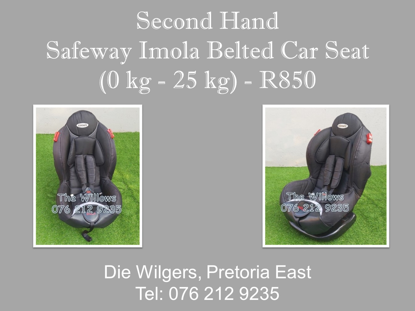 Soft, suede material and nicely padded for extra comfort. Eastern pretoria a day ago. The next market day to be confirmed. Rearward and forward facing child seat from birth to approximately 7 years old. Safeway imola car seat group 1 and 2.